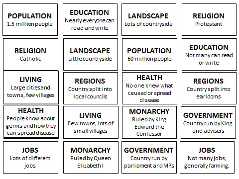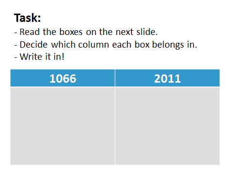 Ciò che colpisce dell’attività è l’estrema scioltezza e semplicità, l’aiuto per il docente che vuole sperimentare, l’assenza di particolari approfondimenti, che potrebbero essere svolti in seguito, dopo che sia stata scoperta l’entità dei cambiamenti e le radici che l’Inghilterra attuale ha nel suo passato.