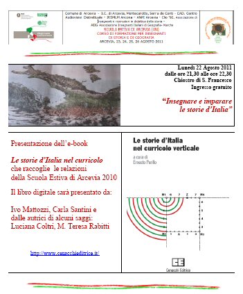 La Scuola Estiva di Arcevia sarà l’occasione per riflettere su questi problemi e su queste prospettive che potrebbero rinnovare l’insegnamento e l’apprendimento sia della storia che della geografia a beneficio della cultura storica e di quella geografica per l’esercizio della cittadinanza attiva.