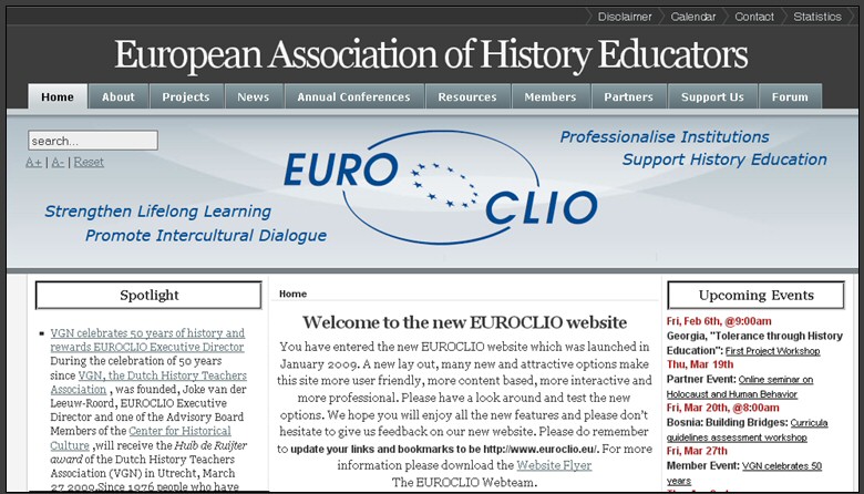E' stato pubblicato il nuovo sito di Euroclio, la conferenza europea permanente delle Associazioni degli insegnanti di storia. Un nuovo layout, nuovi contenuti e maggiore interattività per lo spazio europeo di riferimento per quanti si interessano di didattica della storia